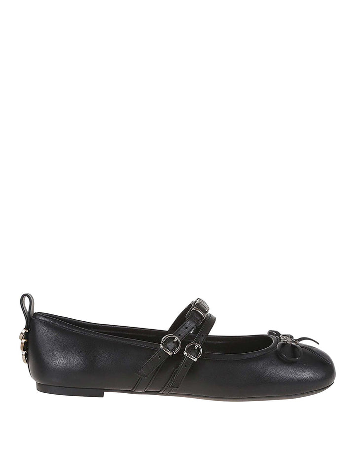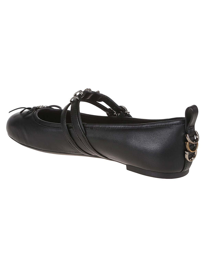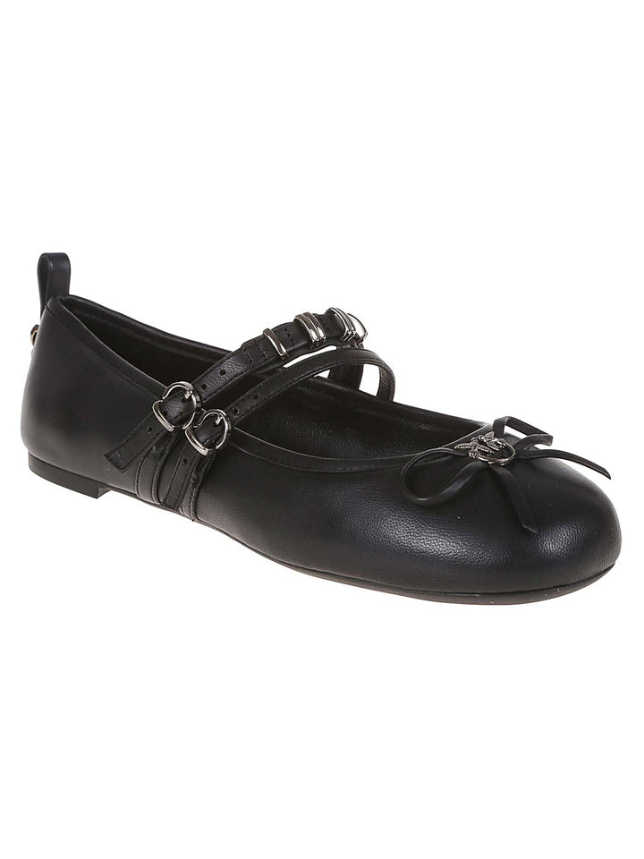 The Gioia 09 ballerinas by Pinko , with a flat rubber sole, made of soft nappa and personalized with a double adjustable strap on the instep and a bow that completes the rounded toe design, made even more unique by the Love Birds Diamond Cut metal logo. The straps and the detail on the heel are personalized with metal inserts and rings that add a bold touch to the classic and feminine style of these women's shoes. The lining and insole of the ballerinas are made of leather, and the insole features 4mm padding that guarantees maximum comfort.