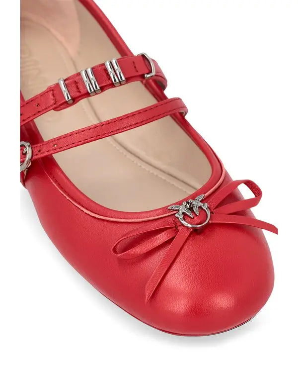 The Gioia 09 ballerinas by Pinko , with a flat rubber sole, made of soft nappa and personalized with a double adjustable strap on the instep and a bow that completes the rounded toe design, made even more unique by the Love Birds Diamond Cut metal logo. The straps and the detail on the heel are personalized with metal inserts and rings that add a bold touch to the classic and feminine style of these women's shoes. The lining and insole of the ballerinas are made of leather, and the insole features 4mm padding that guarantees maximum comfort.