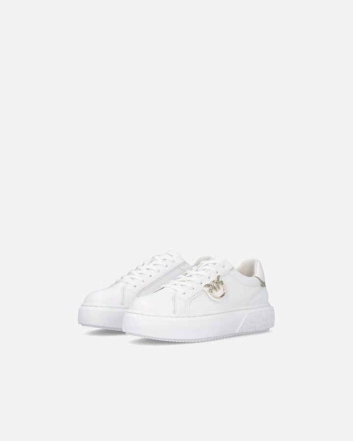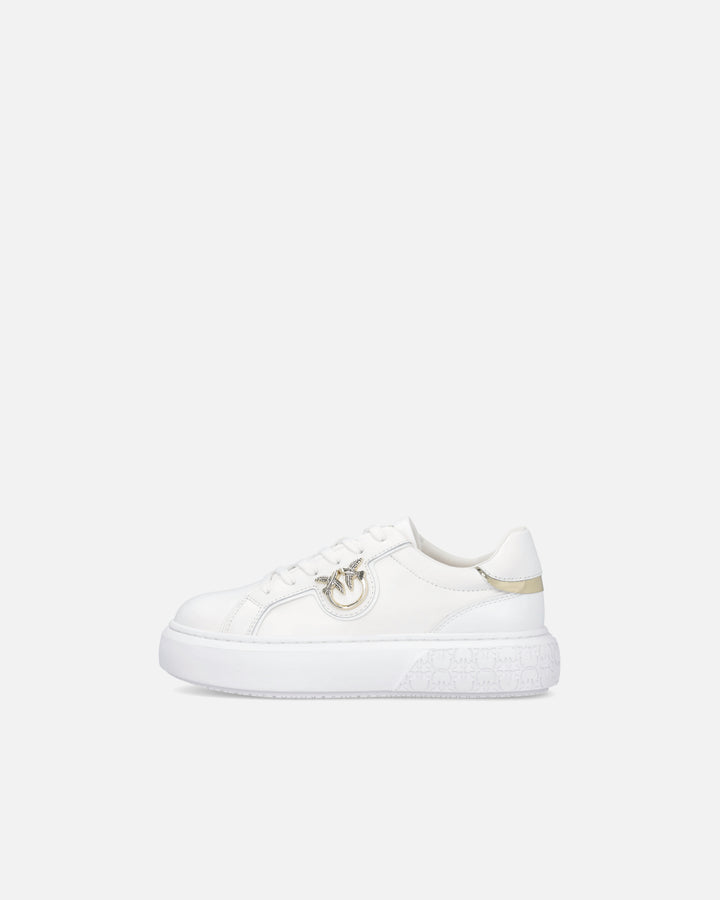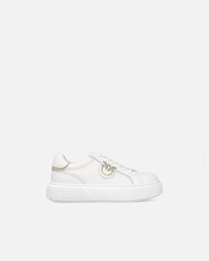 Leather-effect fabric sneakers with lace fastening and heel customised with mirror-finish detail. These sneakers' rubber flatform sole is 4.5 cm high and customised with an etched bird logo at the back. The shoes' lining and insole are both made from leather. These daytime sneakers are perfect for any occasion, even to give more formal suits a sporty edge.