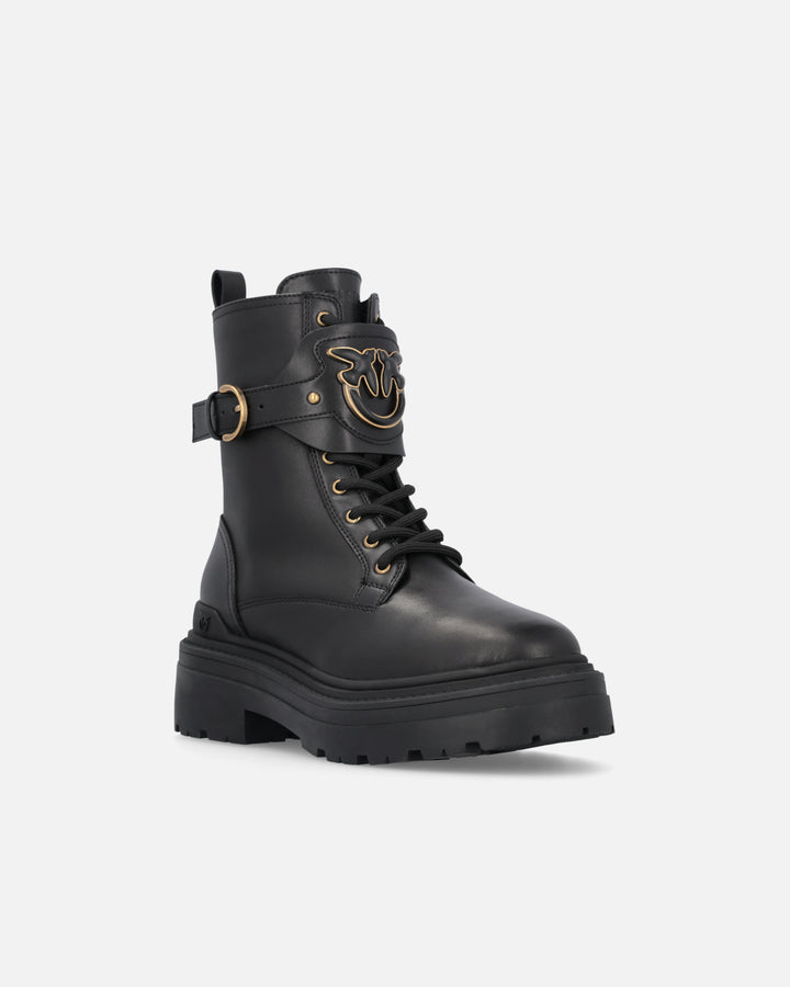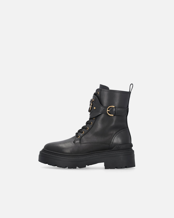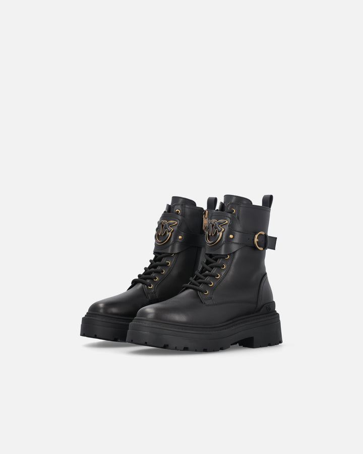 Leather combat boots with branded front strap - MIA 07 - ANKLE BOOTS