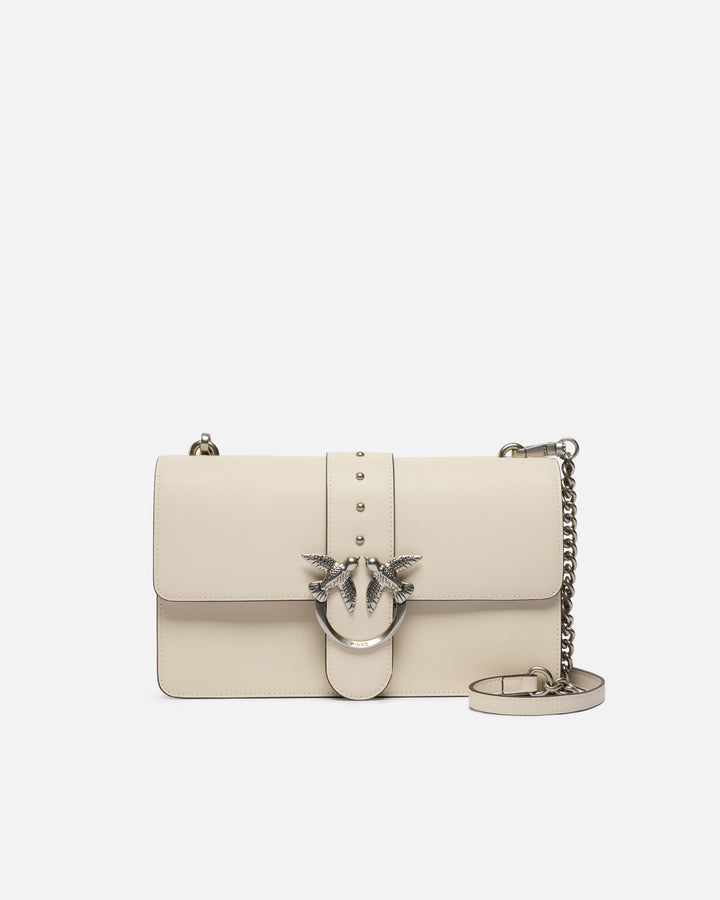 Love Bag One medium handbag in silky leather. Featuring an adjustable and removable leather and chain shoulder strap, this piece is very versatile and practical. The strap fastening with magnetic button is accompanied by a buckle with the Love Birds Diamond Cut logo and small metal studs. The cotton-lined interior features a zipped pocket to keep your essentials safe. Activate your PINKO bag: verify the authenticity of your product and access a personalised experience by scanning the Love Birds embroidery on the back of the bag with your smartphone!