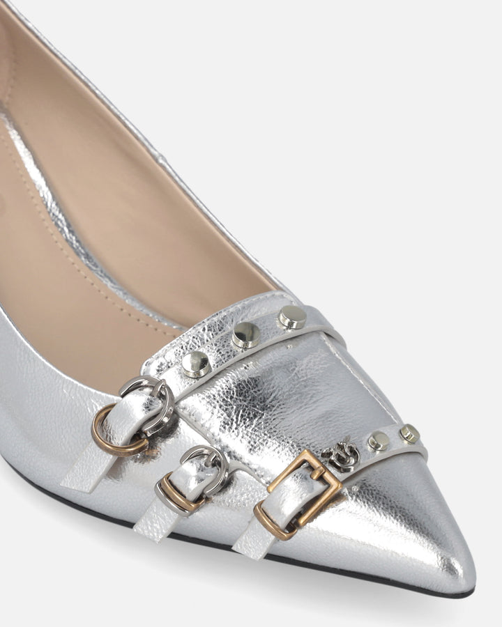 Low laminated nappa leather pumps with straps and studs - GLORIA 12 - PUMPS