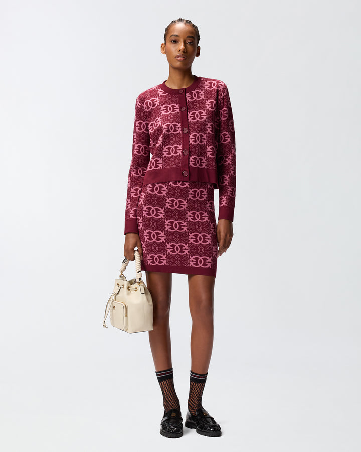 Slim-fitting knit mini skirt with a pleasantly soft feel to the touch. This model is ribbed at the waist for greater comfort, while the all-over jacquard Love Birds logo motif is an eye-catching detail that enhances the design. Pair this refined, versatile piece with its matching cardigan from the same collection for a sure-fire look. The piece has undergone finishing tests to minimise the possible formation of pilling, ensuring greater fabric softness and durability.