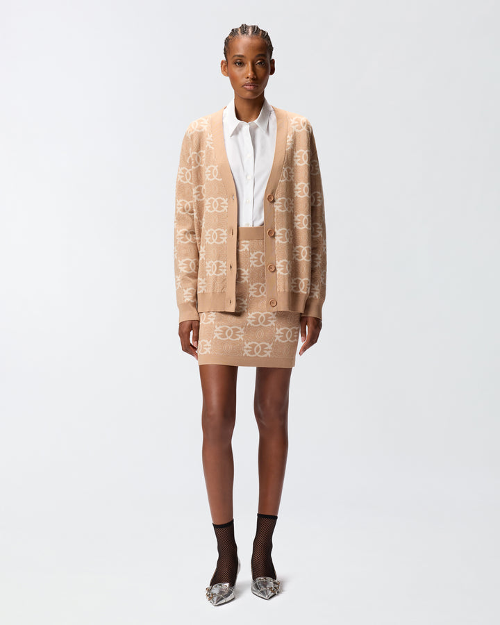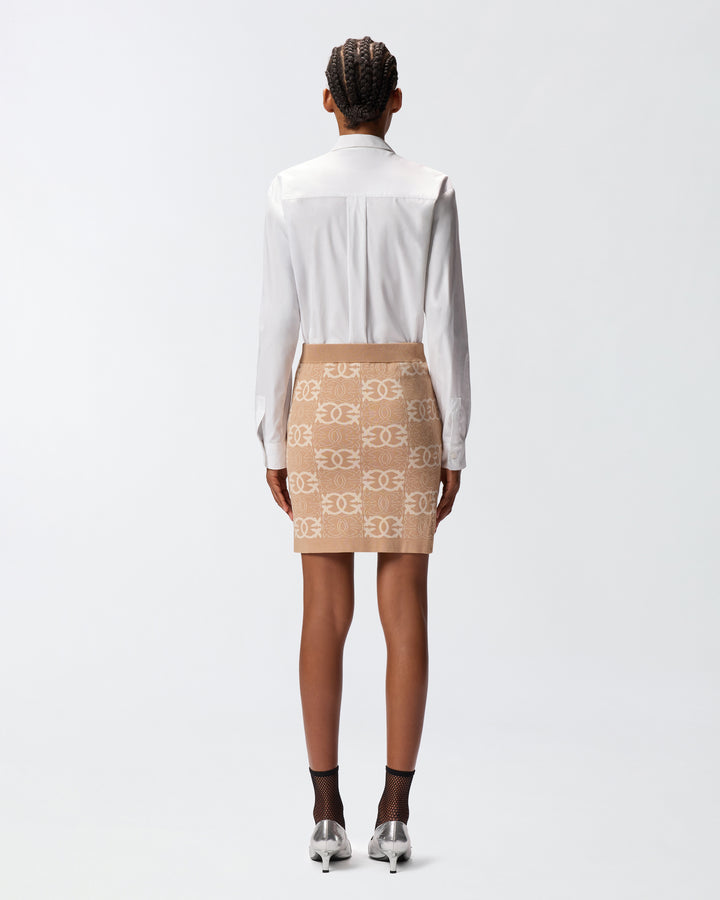Slim-fitting knit mini skirt with a pleasantly soft feel to the touch. This model is ribbed at the waist for greater comfort, while the all-over jacquard Love Birds logo motif is an eye-catching detail that enhances the design. Pair this refined, versatile piece with its matching cardigan from the same collection for a sure-fire look. The piece has undergone finishing tests to minimise the possible formation of pilling, ensuring greater fabric softness and durability.
