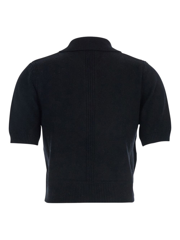 Short slim-fit polo-style sweater in soft merino wool and cashmere-blend yarn. The style is completed by the ribbed sleeve trims and hem, and the tone-on-tone label with the PINKO lettering logo on the left side of the chest. The contrasting yarn elegantly highlights the three-button placket. The piece has undergone finishing tests to minimise the possible formation of pilling, ensuring greater fabric softness and durability. The quality fabric and versatile design will create endless looks.