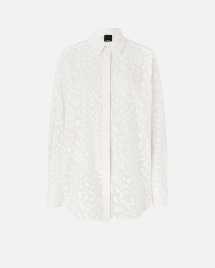 Women's shirt in fine cotton- and silk-blend voile fabric whose slightly sheer texture is accompanied by an all-over abstract print, perfect for making your office or special-event outfit stand out. In a simple, refined design, this shirt is complete with a pointed collar and concealed button fastening at the front.