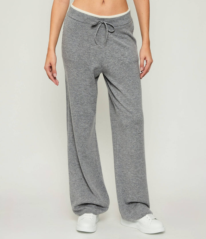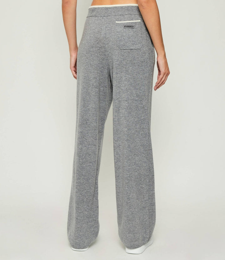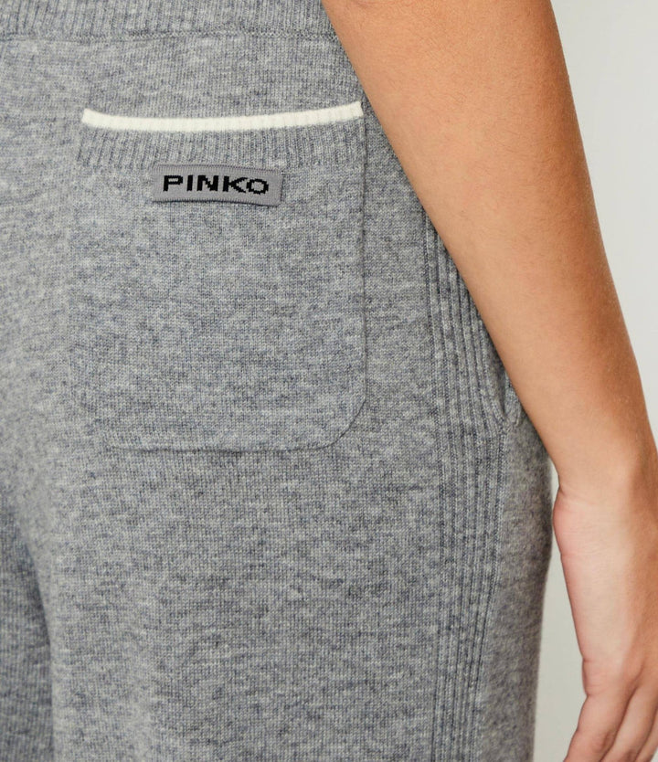 PINKO wool and cashmere trousers featuring a sporty cut, elastic and ribbed waist with ties, back pocket with brand lettering, straight legs.